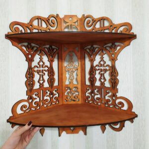 Intra απο ξύλο plywood 3mm-4mm πάχος - Ορθόδοξη Εικόνων Γωνιακό Εικόνο Σπιτιού Ράφι Δίασταση 30x30 cm Intraeaxys-pok3nz87