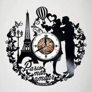 Intra απο ξύλο plywood 3mm-4mm πάχος - Ρολόι τοίχου με δίσκους βινυλίου Paris France Mon Amour Δίασταση 30x30 cm Intraeaxys-r1z26gp1