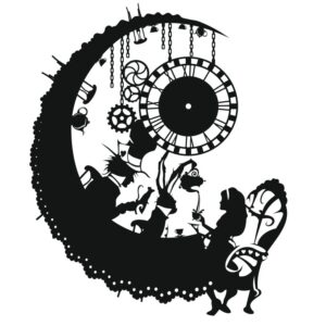 Intra απο ξύλο plywood 3mm-4mm πάχος - Ρολόι τοίχου η Αλίκη στη χώρα των θαυμάτων Δίασταση 30x30 cm Intraeaxys-eo0q32w1