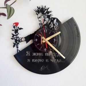 Intra απο ξύλο plywood 3mm-4mm πάχος - Ρολόι τοίχου με δίσκους βινυλίου Vladimir Vysotsky Δίασταση 30x30 cm Intraeaxys-yon0ym27