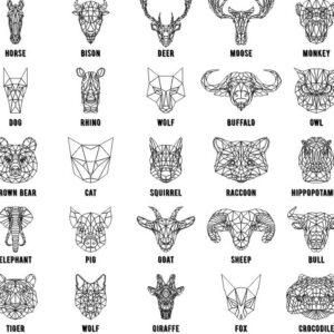 Intra απο ξύλο plywood 3mm-4mm πάχος – Γεωμετρικά σχέδια κεφαλών ζώων για κοπή και χάραξη με λέιζερ 30x30 cm INTRAVECTRY-MY554590