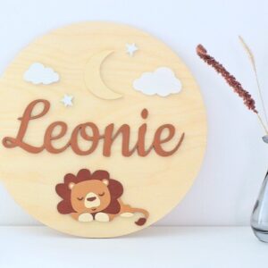Intra απο ξύλο plywood 3mm-4mm πάχος - Χαριτωμένο σημάδι ονόματος λιονταριού Δίασταση 30x30 cm Intraeaxys-e1gk688o