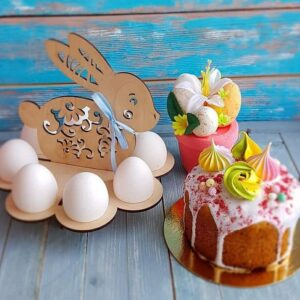 Intra απο ξύλο plywood 3mm-4mm πάχος – Λουλουδάτο λαγουδάκι με βάση στήριξης πασχαλινών αυγών 15x20 cm INTRAVECTRY-MY547723
