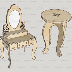 Intra απο ξύλο plywood 3mm-4mm πάχος - Τραπεζάκι μπουντουάρ με κιτ σκαμπό Δίασταση 30x30 cm Intraeaxys-91jdwrl1