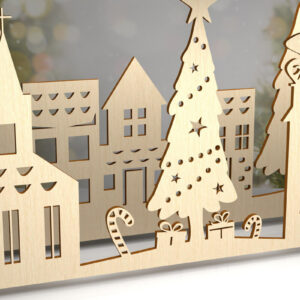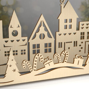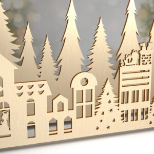 Intra απο ξύλο plywood Χρώμα wenge 3mm-4mm πάχος - Χριστουγεννιάτικο χωριό τρισδιάστατο κομμένο από χαρτί Δίασταση 15x15 cm INTRAFABR-105053855