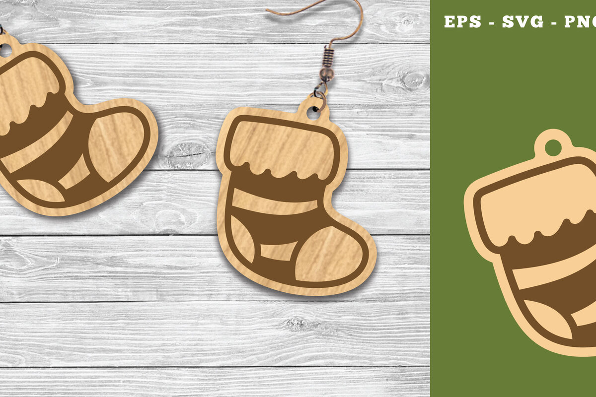 Intra απο ξύλο plywood 3mm-4mm πάχος Χριστουγεννιάτικα σκουλαρίκια με λέιζερ κάλτσα Δίασταση 3x3 cm INTRAFABR-111785547
