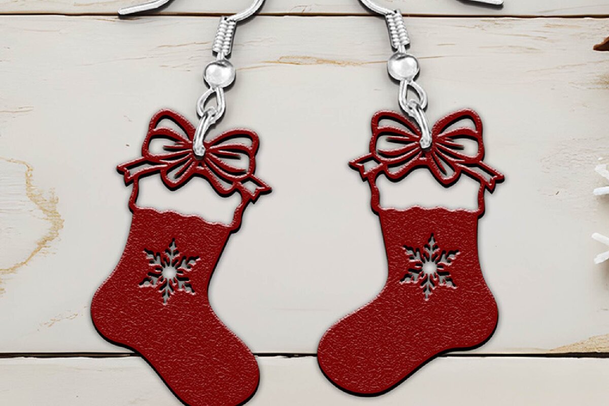 Intra απο ξύλο plywood 3mm-4mm πάχος Χριστουγεννιάτικη κάλτσα Σκουλαρίκια Σχέδιο Δίασταση 3x3 cm INTRAFABR-111318150