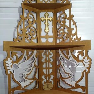 Intra απο ξύλο plywood 3mm-4mm πάχος - Εικονοστάσιο Ξύλινο Ράφι για Εικονίδια Πρότυπο Χριστιανικού Βωμού στο σπίτι Δίασταση 40x50 cm Intraeaxys-r7vmzzk7