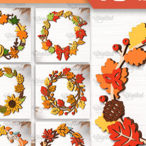 Intra απο ξύλο plywood 3mm-4mm πάχος Δέσμη κοπής με λέιζερ στεφάνια φθινοπώρου Δίασταση 30x20 cm INTRAFABR-102987445