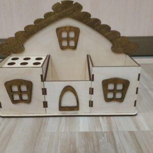 Intra απο ξύλο plywood 3mm-4mm πάχος – Μολυβοθήκη για στυλό Organizer Desk Shaped House 15x20 cm INTRAVECTRY-MY542823