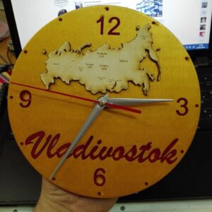 Intra απο ξύλο plywood 3mm-4mm πάχος - Ρολόι τοίχου με το πρότυπο χάρτη της Ρωσίας Δίασταση 30x30 cm Intraeaxys-ro6y8kn7