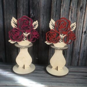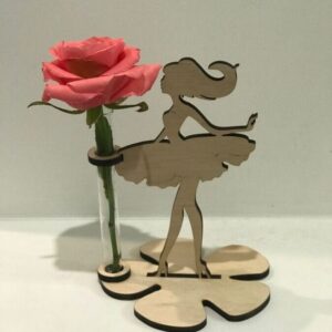 Intra απο ξύλο plywood 3mm-4mm πάχος - Κορίτσι με βάση βάζου δοκιμαστικού σωλήνα λουλουδιών Δίασταση 30x30 cm Intraeaxys-91jdx9p1