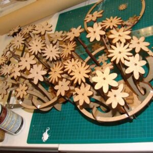 Intra απο ξύλο plywood 3mm-4mm πάχος - Διακοσμητικό στεφάνι από κόντρα πλακέ αυτοκινήτου πουλί λουλούδια Δίασταση 30x30 cm Intraeaxys-e1gklr8o