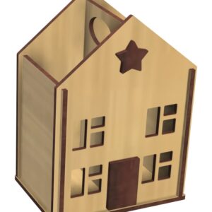 Intra απο ξύλο plywood 3mm-4mm πάχος - Μολυβοθήκη σε σχήμα σπιτιού Δίασταση 30x30 cm Intraeaxys-51rrpv01