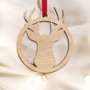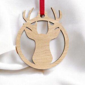 Intra απο ξύλο plywood 3mm-4mm πάχος – Κεφάλι ελαφιού με χριστουγεννιάτικο μπιχλιμπίδι με ελαφοκέρατα 12x15 cm INTRAVECTRY-MY548016