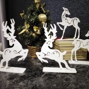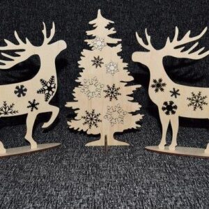 Intra απο ξύλο plywood 3mm-4mm πάχος - Μίνι χριστουγεννιάτικο δέντρο και ελάφι για χριστουγεννιάτικα στολίδια γραφείου Δίασταση 10x10 cm Intraeaxys-r1z2g6p1