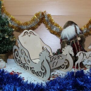 Intra απο ξύλο plywood 3mm-4mm πάχος - Ξύλινο Χριστουγεννιάτικο έλκηθρο και τάρανδος Δίασταση 30x30 cm Intraeaxys-91jde681