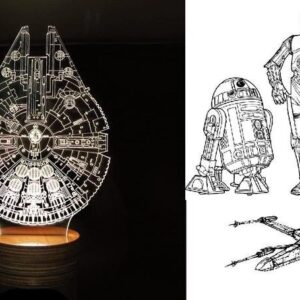Intra απο ξύλο plywood 3mm-4mm πάχος - Stand και 3D Acrylic Light Star Wars, Millennium, Droid Δίασταση 20x20 cm Intraeaxys-51r8r4d7
