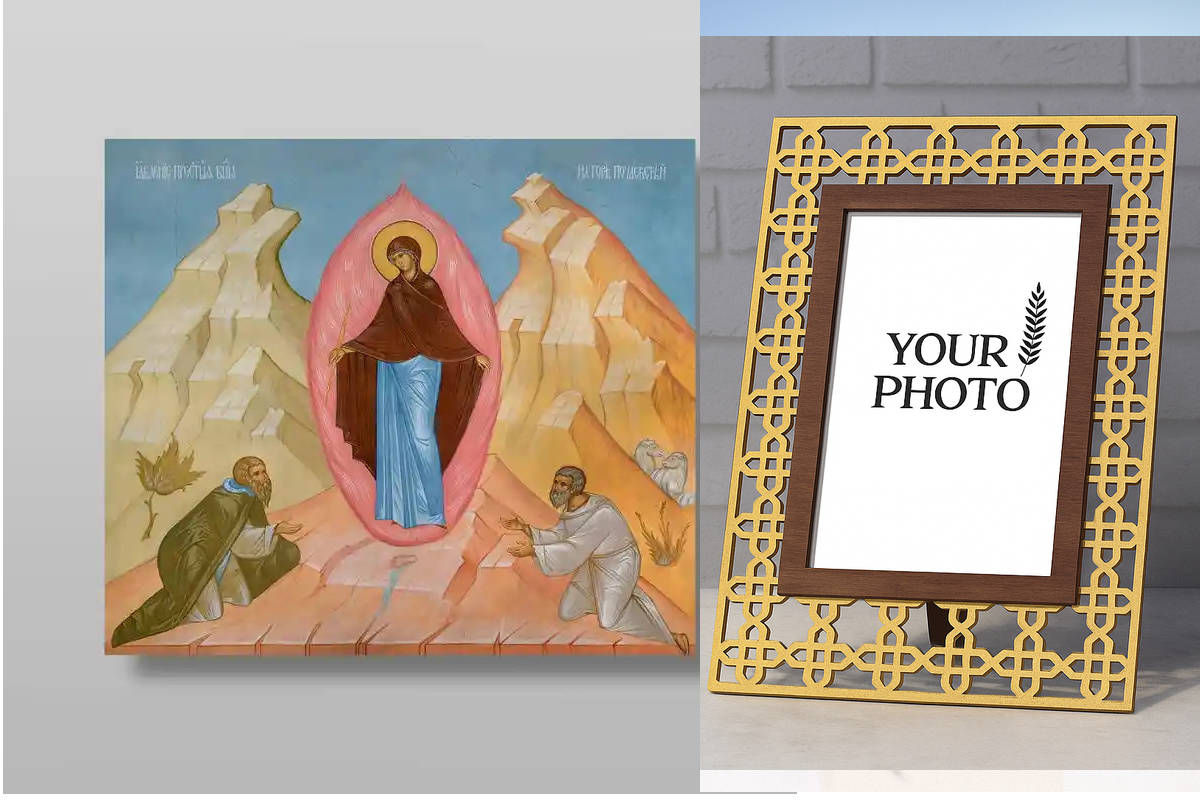 Εικόνα Ορθοδοξίας Πολυτελείας με σχεδιο Σταυρούς μαζι με Βάση σε 8 χρώματα με περίγραμμα χρυσό σε ξύλο Plywood (Πλακάζ) με βάση Το Apparition on Mount Pochaevskaya Χειροποίητη Ελληνορθόδοξη , Κρεμαστή πλάκα βυζαντινής τέχνης, χριστιανική τέχνη Διάσταση 15x11 cm (5,9 x 4,3 ίντσες) INTRAEK3kadro3211-2863