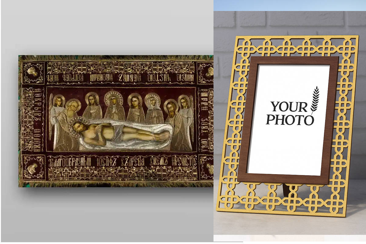 Εικόνα Ορθοδοξίας Πολυτελείας με σχεδιο Σταυρούς μαζι με Βάση σε 8 χρώματα με περίγραμμα χρυσό σε ξύλο Plywood (Πλακάζ) με βάση Shroud of Jesus Christ - Χειροποίητη Ελληνορθόδοξη , Κρεμαστή πλάκα βυζαντινής τέχνης, χριστιανική τέχνη Διάσταση 15x11 cm (5,9 x 4,3 ίντσες) INTRAEK3kadro3211-2920
