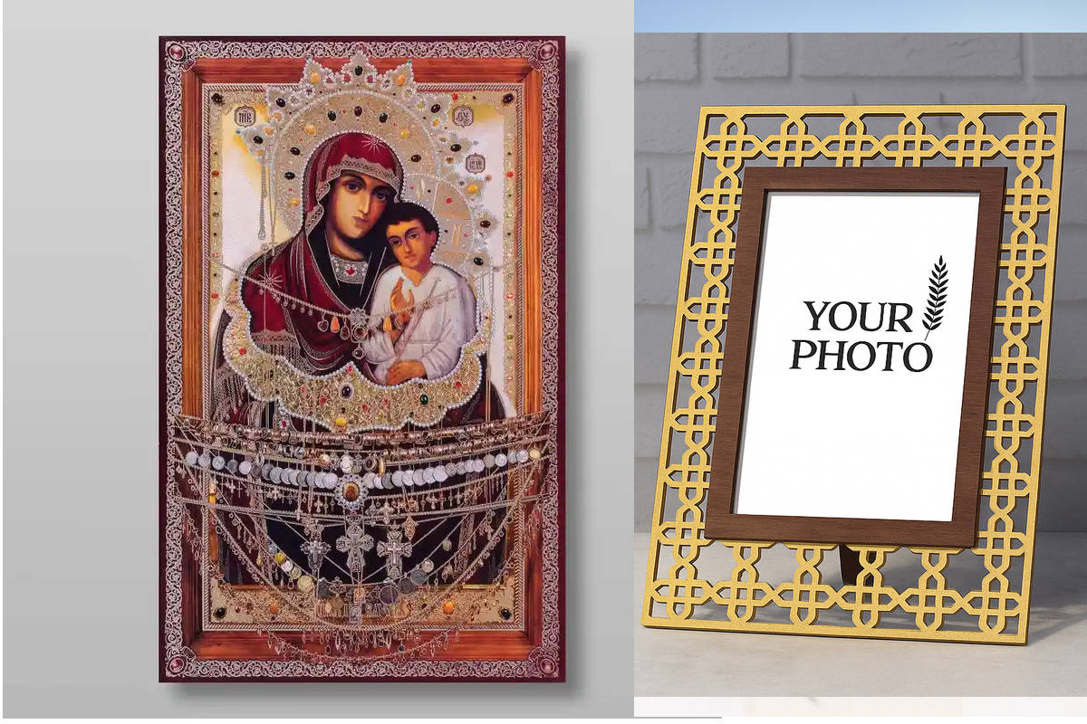 Εικόνα Ορθοδοξίας Πολυτελείας με σχεδιο Σταυρούς μαζι με Βάση σε 8 χρώματα με περίγραμμα χρυσό σε ξύλο Plywood (Πλακάζ) με βάση Svyatogorskaya Εικόνα της Μητέρας του Θεού Χειροποίητη Ελληνορθόδοξη , Κρεμαστή πλάκα βυζαντινής τέχνης, χριστιανική τέχνη Διάσταση 15x11 cm (5,9 x 4,3 ίντσες) INTRAEK3kadro3211-21244