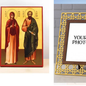 Εικόνα Ορθοδοξίας Πολυτελείας με σχεδιο Σταυρούς μαζι με Βάση σε 8 χρώματα με περίγραμμα χρυσό σε ξύλο Plywood (Πλακάζ) με βάση Saints Priscilla and Aquila, Ξύλινη Χειροποίητη Εικόνα Ελληνικού Premium Βυζαντινού Στυλ Κρεμασμένη σε ξύλινη πλάκα Χειροποίητη Ελληνορθόδοξη εικόνα του Ιησού Χριστού, Κρεμαστή πλάκα βυζαντινής τέχνης, χριστιανική τέχνη Διάσταση 15x11 cm (5,9 x 4,3 ίντσες) INTRAEK3kadro3211-611206