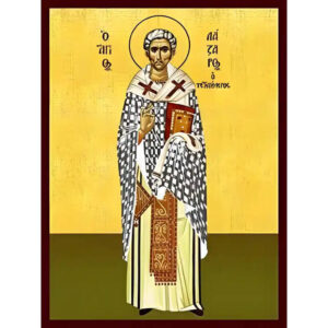 Εικόνα Ορθοδοξίας με περίγραμμα χρυσό σε ξύλο Φλαμουρίας με βάση Εικόνα ΑΓΙΟΣ ΛΑΖΑΡΟΣ Ο ΤΕΤΡΑΗΜΕΡΟΣ, ΕΠΙΣΚΟΠΟΣ ΚΙΤΙΟΥ ΚΥΠΡΟΥ Χειροποίητη Ελληνορθόδοξη εικόνα του Ιησού Χριστού, Κρεμαστή πλάκα βυζαντινής τέχνης, χριστιανική τέχνη Διάσταση 15x11 cm (5,9x4,3 ίντσες) INTRAEK-337757864750