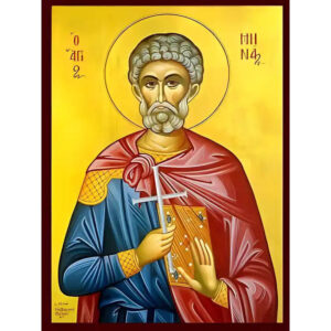 Εικόνα Ορθοδοξίας με περίγραμμα χρυσό σε ξύλο Φλαμουρίας με βάση Εικόνα ΑΓΙΟΣ ΜΗΝΑΣ, Ο ΜΕΓΑΛΟΜΑΡΤΥΣ, Ο ΑΙΓΥΠΤΙΟΣ Χειροποίητη Ελληνορθόδοξη εικόνα του Ιησού Χριστού, Κρεμαστή πλάκα βυζαντινής τέχνης, χριστιανική τέχνη Διάσταση 15x11 cm (5,9x4,3 ίντσες) INTRAEK-337757864721