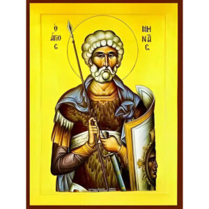 Εικόνα Ορθοδοξίας με περίγραμμα χρυσό σε ξύλο Φλαμουρίας με βάση Εικόνα ΑΓΙΟΣ ΜΗΝΑΣ, Ο ΜΕΓΑΛΟΜΑΡΤΥΣ, Ο ΑΙΓΥΠΤΙΟΣ, ΕΦΙΠΠΟΣ Χειροποίητη Ελληνορθόδοξη εικόνα του Ιησού Χριστού, Κρεμαστή πλάκα βυζαντινής τέχνης, χριστιανική τέχνη Διάσταση 15x11 cm (5,9x4,3 ίντσες) INTRAEK-337757864718