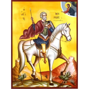Εικόνα Ορθοδοξίας με περίγραμμα χρυσό σε ξύλο Φλαμουρίας με βάση Εικόνα ΑΓΙΟΣ ΜΗΝΑΣ, Ο ΜΕΓΑΛΟΜΑΡΤΥΣ, Ο ΑΙΓΥΠΤΙΟΣ, ΕΦΙΠΠΟΣ Χειροποίητη Ελληνορθόδοξη εικόνα του Ιησού Χριστού, Κρεμαστή πλάκα βυζαντινής τέχνης, χριστιανική τέχνη Διάσταση 15x11 cm (5,9x4,3 ίντσες) INTRAEK-337757864717