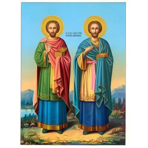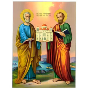 Εικόνα Ορθοδοξίας με περίγραμμα χρυσό σε ξύλο Φλαμουρίας με βάση Εικόνα ΑΓΙΟΙ ΑΠΟΣΤΟΛΟΙ ΠΕΤΡΟΣ & ΠΑΥΛΟΣ, ΟΛΟΣΩΜΟΙ Χειροποίητη Ελληνορθόδοξη εικόνα του Ιησού Χριστού, Κρεμαστή πλάκα βυζαντινής τέχνης, χριστιανική τέχνη Διάσταση 15x11 cm (5,9x4,3 ίντσες) INTRAEK-337757863998
