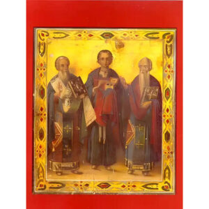 Εικόνα Ορθοδοξίας με περίγραμμα χρυσό σε ξύλο Φλαμουρίας με βάση Εικόνα ΑΓΙΟΙ ΑΝΤΙΠΑΣ, ΠΑΝΤΕΛΕΗΜΩΝ ΚΑΙ ΧΑΡΑΛΑΜΠΟΣ, ΟΛΟΣΩΜΟΙ Χειροποίητη Ελληνορθόδοξη εικόνα του Ιησού Χριστού, Κρεμαστή πλάκα βυζαντινής τέχνης, χριστιανική τέχνη Διάσταση 15x11 cm (5,9x4,3 ίντσες) INTRAEK-337757864000
