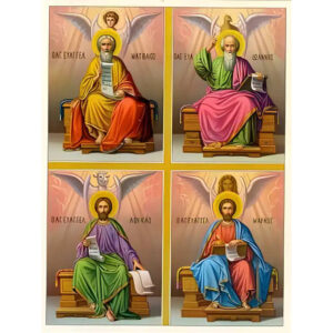 Εικόνα Ορθοδοξίας με περίγραμμα χρυσό σε ξύλο Φλαμουρίας με βάση Εικόνα ΑΓΙΟΙ ΑΠΟΣΤΟΛΟΙ ΚΑΙ ΕΥΑΓΓΕΛΙΣΤΕΣ ΤΕΣΣΕΡΕΙΣ, ΜΑΡΚΟΣ, ΜΑΤΘΑΙΟΣ, ΛΟΥΚΑΣ ΚΑΙ ΙΩΑΝΝΗΣ, ΕΝΘΡΟΝΟΙ Χειροποίητη Ελληνορθόδοξη εικόνα του Ιησού Χριστού, Κρεμαστή πλάκα βυζαντινής τέχνης, χριστιανική τέχνη Διάσταση 15x11 cm (5,9x4,3 ίντσες) INTRAEK-337757863999