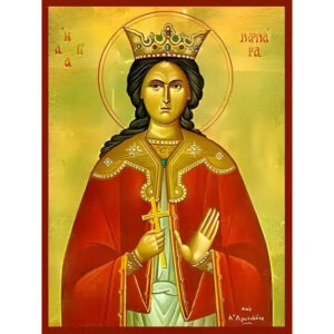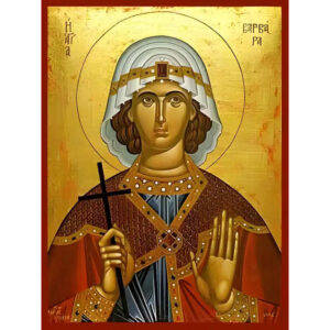 Εικόνα Ορθοδοξίας με περίγραμμα χρυσό σε ξύλο Φλαμουρίας με βάση Εικόνα ΑΓΙΑ ΒΑΡΒΑΡΑ, Η ΜΕΓΑΛΟΜΑΡΤΥΣ, ΟΛΟΣΩΜΗ, ΠΡΟΣΤΑΤΗΣ ΤΟΥ ΠΥΡΟΒΟΛΙΚΟΥ Χειροποίητη Ελληνορθόδοξη εικόνα του Ιησού Χριστού, Κρεμαστή πλάκα βυζαντινής τέχνης, χριστιανική τέχνη 21x15 cm (8,3x5,9 ίντσες) INTRAEK-66497757865380