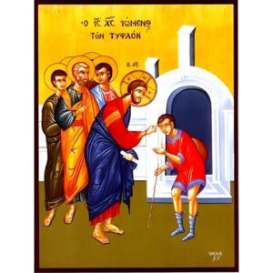 Εικόνα Ορθοδοξίας με περίγραμμα χρυσό σε ξύλο Φλαμουρίας με βάση Εικόνα ΙΗΣΟΥΣ ΧΡΙΣΤΟΣ ΙΩΜΕΝΟΣ ΤΟΝ ΕΚ ΓΕΝΕΤΗΣ ΤΥΦΛΟΝ Χειροποίητη Ελληνορθόδοξη εικόνα του Ιησού Χριστού, Κρεμαστή πλάκα βυζαντινής τέχνης, χριστιανική τέχνη Διάσταση 15x11 cm (5,9x4,3 ίντσες) INTRAEK-337757864403