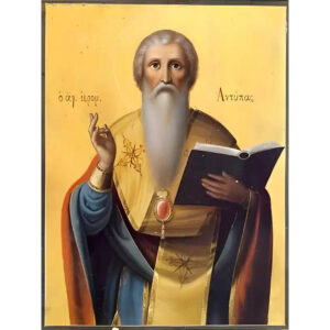 Εικόνα Ορθοδοξίας με περίγραμμα χρυσό σε ξύλο Φλαμουρίας με βάση Εικόνα ΑΓΙΟΣ ΑΝΤΙΠΑΣ, ΙΕΡΟΜΑΡΤΥΣ, ΕΠΙΣΚΟΠΟΣ ΠΕΡΓΑΜΟΥ Χειροποίητη Ελληνορθόδοξη εικόνα του Ιησού Χριστού, Κρεμαστή πλάκα βυζαντινής τέχνης, χριστιανική τέχνη Διάσταση 15x11 cm (5,9x4,3 ίντσες) INTRAEK-337757863979