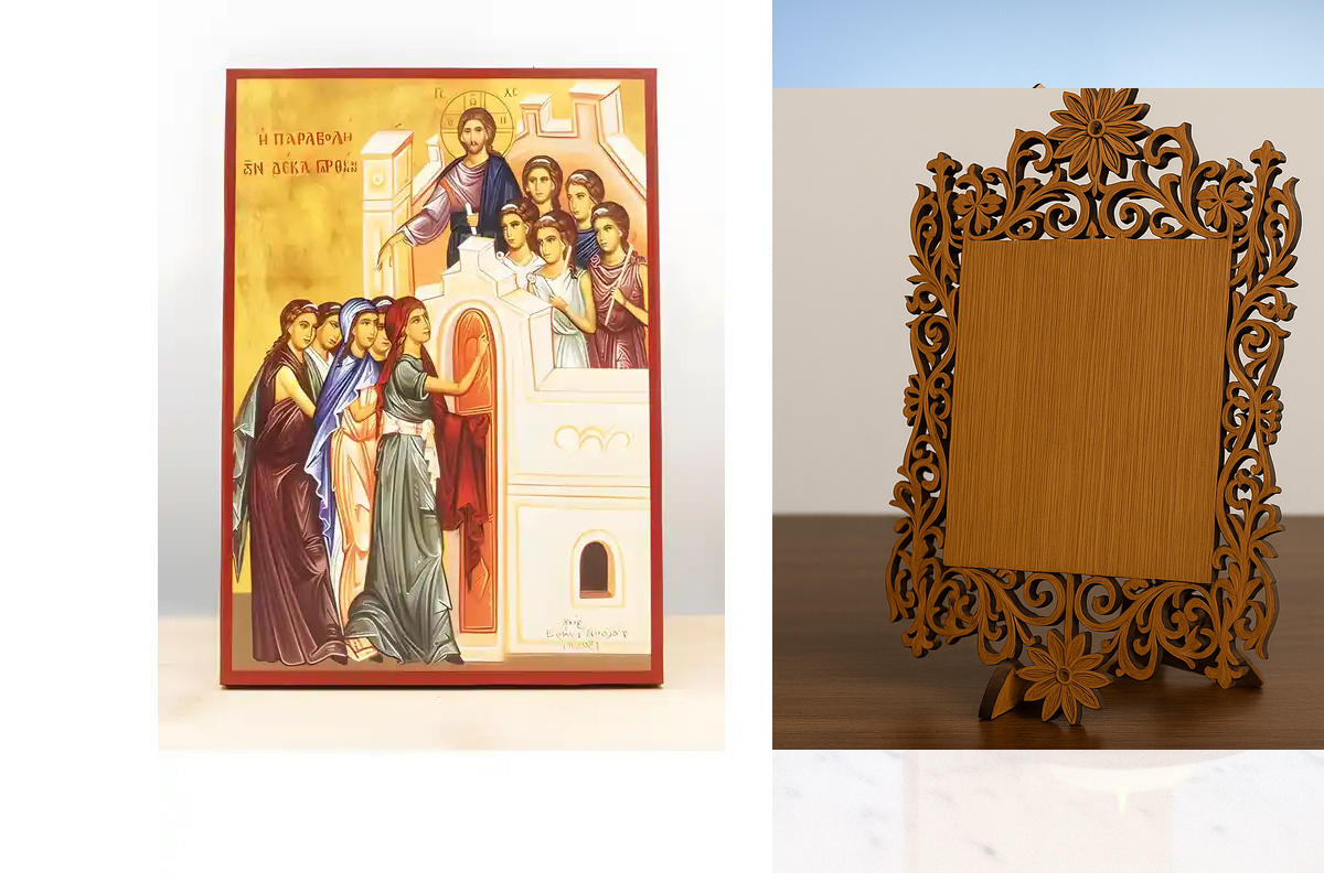 Εικόνα Ορθοδοξίας Δαντέλα μαζι με Βάση σε 8 χρώματα με περίγραμμα χρυσό σε ξύλο Plywood (Πλακάζ) με βάση Ιησούς Χριστός Παραβολή των Δέκα Παρθένων, Ξύλινη Χειροποίητη Εικόνα Ελληνικού Βυζαντινού Στυλ τοίχου που κρέμεται σε ξύλινη πλάκα Θρησκευτικό θέμα Χειροποίητη Ελληνορθόδοξη εικόνα του Ιησού Χριστού, Κρεμαστή πλάκα βυζαντινής τέχνης, χριστιανική τέχνη 45x35 cm (17,7 x 13,8 ίντσες) INTRAEKkadro3211-342111170