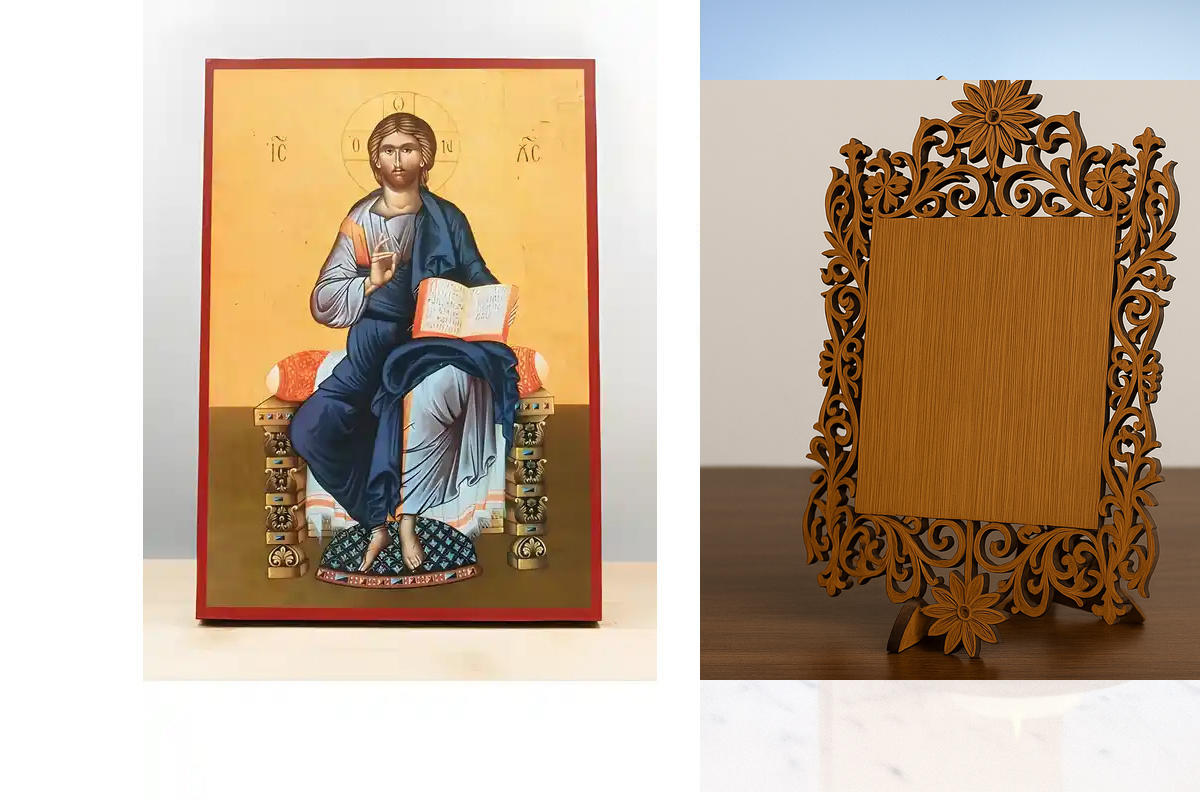 Εικόνα Ορθοδοξίας Δαντέλα μαζι με Βάση σε 8 χρώματα με περίγραμμα χρυσό σε ξύλο Plywood (Πλακάζ) με βάση Ο Ιησούς Χριστός ευλογεί τον Παντοκράτορα, Ξύλινη Χειροποίητη Εικόνα Ελληνικού Premium Βυζαντινού Στυλ Κρεμασμένο σε ξύλινη πλάκα Θρησκευτικό θέμα Χειροποίητη Ελληνορθόδοξη εικόνα του Ιησού Χριστού, Κρεμαστή πλάκα βυζαντινής τέχνης, χριστιανική τέχνη 45x35 cm (17,7 x 13,8 ίντσες) INTRAEKkadro3211-342110845