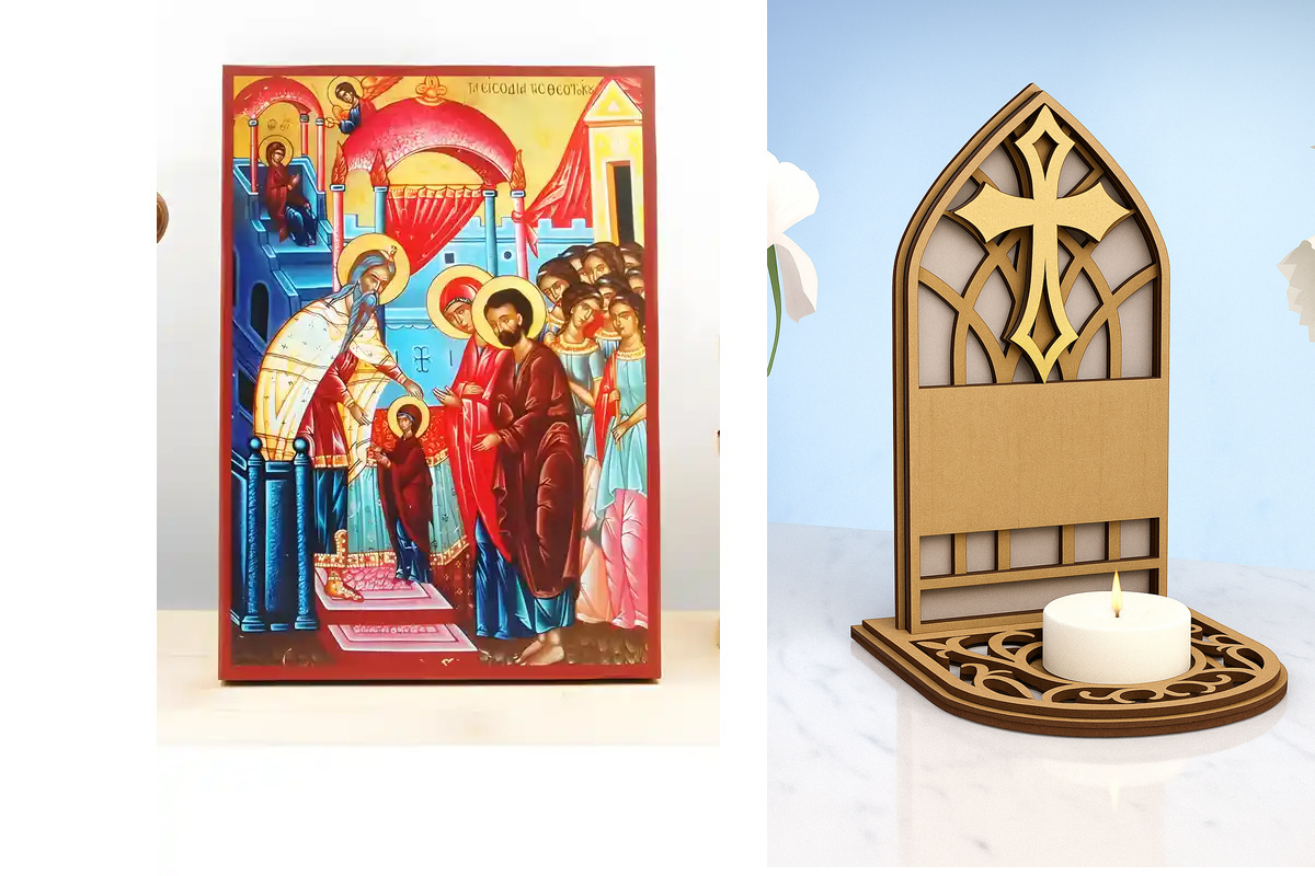 Εικόνα Ορθοδοξίας Καντηλάκι σε 8 χρώματα με περίγραμμα χρυσό σε ξύλο Plywood (Πλακάζ) με βάση Η είσοδος της Παναγίας στο Ναό, Ξύλινη Χειροποίητη Εικόνα Ελληνικού Premium Βυζαντινού Στυλ Κρεμαστή σε Ξυλόπλακα Θρησκευτικό Θέμα Χειροποίητη Ελληνορθόδοξη εικόνα του Ιησού Χριστού, Κρεμαστή πλάκα βυζαντινής τέχνης, χριστιανική τέχνη 45x35 cm (17,7 x 13,8 ίντσες) INTRAEKkadro1-342110936