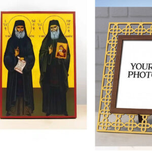 Εικόνα Ορθοδοξίας Πολυτελείας με σχεδιο Σταυρούς μαζι με Βάση σε 8 χρώματα με περίγραμμα χρυσό σε ξύλο Plywood (Πλακάζ) με βάση Άγιοι Παΐσιος του Αγίου Όρους & Πορφύριος Καυσοκαλυβίων, Ξύλινη Χειροποίητη Εικόνα Ελληνικής Βυζαντινής Στυλ Κρεμαστή σε ξύλινη πλάκα Χειροποίητη Ελληνορθόδοξη εικόνα του Ιησού Χριστού, Κρεμαστή πλάκα βυζαντινής τέχνης, χριστιανική τέχνη Διάσταση 10x7 cm (3,9 x 2,8 ίντσες) INTRAEK3kadro3211-10813