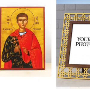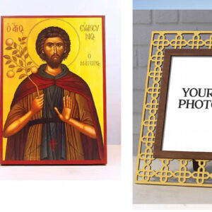 Εικόνα Ορθοδοξίας Πολυτελείας με σχεδιο Σταυρούς μαζι με Βάση σε 8 χρώματα με περίγραμμα χρυσό σε ξύλο Plywood (Πλακάζ) με βάση Άγιος Εφραίμ Νέας Μάκρης ο Νεομάρτυς, Ξύλινη Χειροποίητη Εικόνα με Ψηφιακή Εκτύπωση Ελληνικό Premium Βυζαντινού Στυλ Κρεμαστό τοίχου Θρησκευτικό Θέμα Χειροποίητη Ελληνορθόδοξη εικόνα του Ιησού Χριστού, Κρεμαστή πλάκα βυζαντινής τέχνης, χριστιανική τέχνη Διάσταση 15x11 cm (5,9 x 4,3 ίντσες) INTRAEK3kadro3211-611121