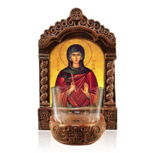 Εικόνα Ορθοδοξίας με περίγραμμα χρυσό σε ξύλο Φλαμουρίας με βάση Φωτιστικό Αγρυπνίας Αγίας Αναστασίας η Θεραπεύτρια, Επιτραπέζια εικόνα Αγίας Αναστασίας η Θεραπεύτρια, Χειροποίητο Κεραμικό Φωτιστικό με Γυάλινο Κύπελλο Διάσταση 15x11 cm (5,9 x 4,3 ίντσες) INTRAEK-16723916