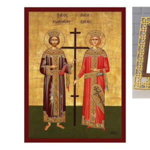 Εικόνα Ορθοδοξίας με περίγραμμα χρυσό σε ξύλο Φλαμουρίας με βάση Εικόνα Αγίων Κωνσταντίνου και Ελένης, Χειροποίητη εικόνα Κωνσταντίνου και Ελένης, Βυζαντινή επιτοίχια πλάκα, θρησκευτικό δώρο, χριστιανική διακόσμηση Διάσταση 15x11 cm (5,9 x 4,3 ίντσες) INTRAEK-16724002