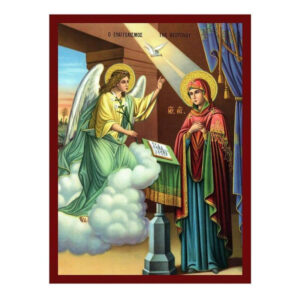 Εικόνα Ορθοδοξίας με περίγραμμα χρυσό σε ξύλο Φλαμουρίας με βάση Ο Ευαγγελισμός της Θεοτόκου, Χειροποίητη εικόνα του Ευαγγελισμού της Θεοτόκου, τείχος βυζαντινής τέχνης, θρησκευτικό δώρο, χριστιανική διακόσμηση Διάσταση 40x30 cm (15,8 x 11,8 ίντσες)INTRAEK-43216723677