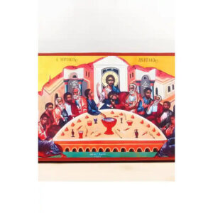 Εικόνα Ορθοδοξίας με περίγραμμα χρυσό σε ξύλο Φλαμουρίας με βάση Ο Μυστικός Δείπνος, Ξύλινη Χειροποίητη Εικόνα Ελληνικού Premium Βυζαντινού Στυλ Κρεμασμένο σε ξύλινη πλάκα Θρησκευτικό θέμα Χειροποίητη Ελληνορθόδοξη εικόνα του Ιησού Χριστού, Κρεμαστή πλάκα βυζαντινής τέχνης, χριστιανική τέχνη Διάσταση 40x30 cm (15,8 x 11,8 ίντσες) INTRAEK-2111048