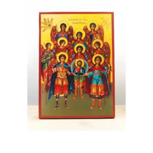 Εικόνα Ορθοδοξίας με περίγραμμα χρυσό σε ξύλο Φλαμουρίας με βάση Σύναξη Αρχαγγέλων με τον Ιησού Χριστό, Ξύλινη Χειροποίητη Εικόνα Ελληνικού Βυζαντινού Στυλ Κρεμαστή σε Ξύλινη Πλάκα Θρησκευτικό Θέμα Χειροποίητη Ελληνορθόδοξη εικόνα του Ιησού Χριστού, Κρεμαστή πλάκα βυζαντινής τέχνης, χριστιανική τέχνη Διάσταση 40x30 cm (15,8 x 11,8 ίντσες) INTRAEK-2110806