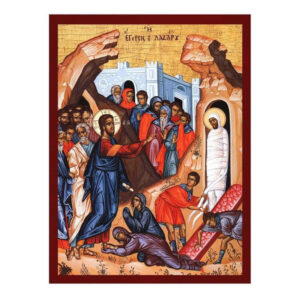Εικόνα Ορθοδοξίας με περίγραμμα χρυσό σε ξύλο Φλαμουρίας με βάση Το ύψωμα της εικόνας του Λαζάρου, Χειροποίητη ελληνική εικόνα της Εγέρσης του Λαζάρου, επιτοίχια πλάκα βυζαντινής τέχνης, χριστιανικό δώρο Διάσταση 40x30 cm (15,8 x 11,8 ίντσες)INTRAEK-43216724128