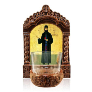 Εικόνα Ορθοδοξίας με περίγραμμα χρυσό σε ξύλο Φλαμουρίας με βάση Φωτιστικό Αγρυπνίας Αγίου Εφραίμ, Επιτραπέζια εικόνα Αγίου Εφραίμ, Χειροποίητο Κεραμικό Φωτιστικό με Γυάλινο Κύπελλο Διάσταση 40x30 cm (15,8 x 11,8 ίντσες)INTRAEK-43216724148