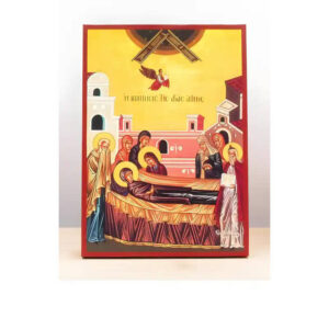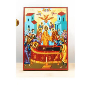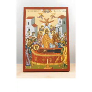 Εικόνα Ορθοδοξίας με περίγραμμα χρυσό σε ξύλο Φλαμουρίας με βάση Η Κοίμηση της Θεοτόκου με τον Ιησού, Ξύλινη Χειροποίητη Εικόνα με Ψηφιακή Εκτύπωση Ελληνικό Premium Βυζαντινού Στυλ Κρεμαστό τοίχου Θρησκευτικό Θέμα Χειροποίητη Ελληνορθόδοξη εικόνα του Ιησού Χριστού, Κρεμαστή πλάκα βυζαντινής τέχνης, χριστιανική τέχνη Διάσταση 40x30 cm (15,8 x 11,8 ίντσες) INTRAEK-2111003