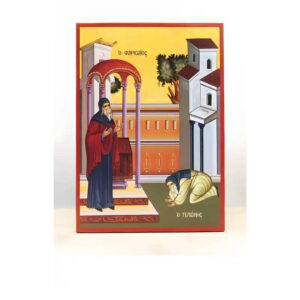 Εικόνα Ορθοδοξίας με περίγραμμα χρυσό σε ξύλο Φλαμουρίας με βάση Κυριακή του Τελώνη και του Φαρισαίου, Ξύλινη Χειροποίητη Εικόνα Ελληνικού Βυζαντινού Στυλ Κρεμασμένη σε ξύλινη πλάκα Χειροποίητη Ελληνορθόδοξη εικόνα του Ιησού Χριστού, Κρεμαστή πλάκα βυζαντινής τέχνης, χριστιανική τέχνη Διάσταση 40x30 cm (15,8 x 11,8 ίντσες) INTRAEK-2111156
